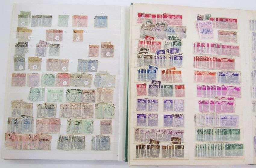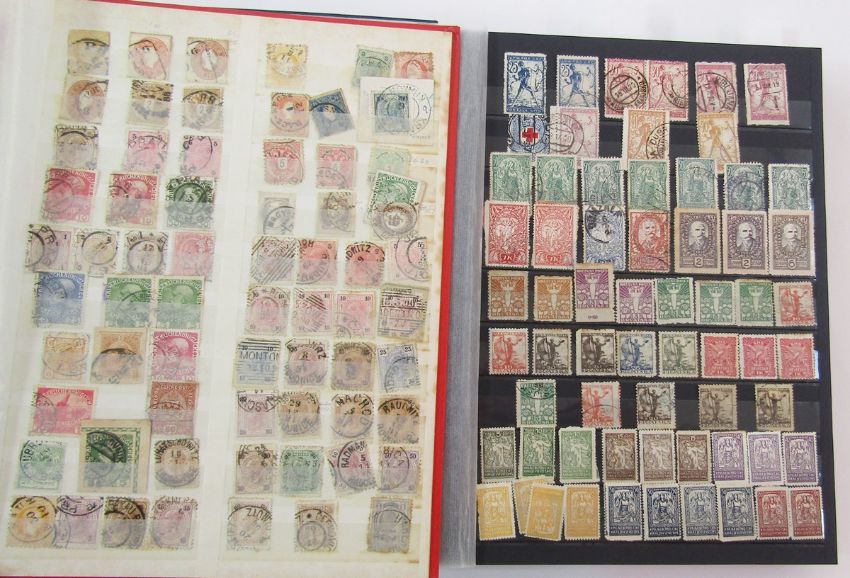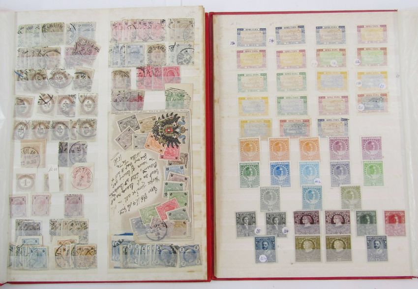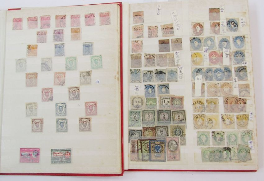 Stamps of Europe: Six A4 stock-books with numerous issues, mostly used, of Austria, Bosnia-Herzegovina, Bulgaria, Italy, Portugal & colonies, Romania, Serbia, Spain & colonies, Yugoslavia from mid-1800s to modern. Definitives, commemoratives, official, postage due, fiscal, Red Cross, air and Olympic with less common, higher catalogue value, amongst 1000s.