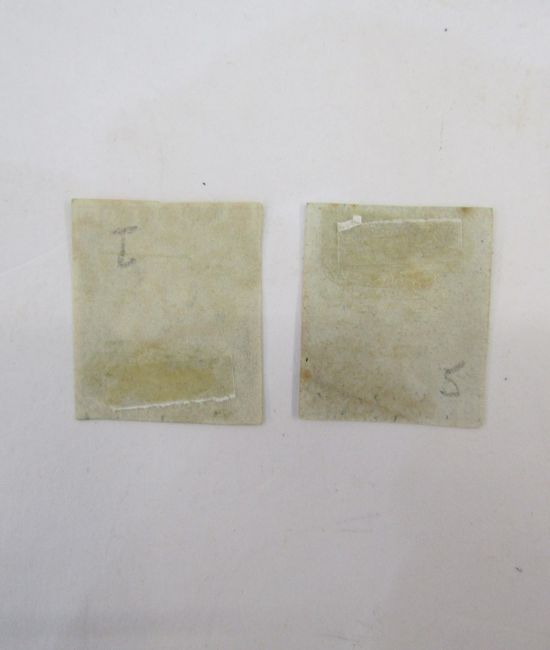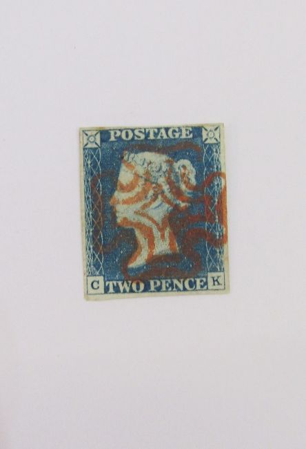 GB stamps: Fine Penny Black ‘SL’ (SG 2) and first issue 2d Blue ‘CK’ (SG 5), both 4 margin & red Maltese Cross, total SG catalogue value £1675.