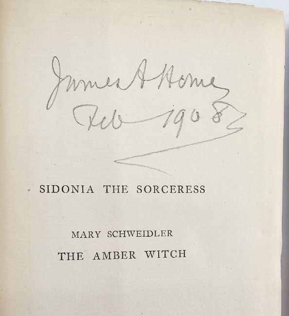 Meinhold, William "Sidonia the Sorceress", translated by Lady Wilde (mother of Oscar Wilde) and Mary Schweidler (Amber Witch), 2 vols, Reeves & Turner 1894, moire boards with gilt titles to backstrip, glassine covers (2)