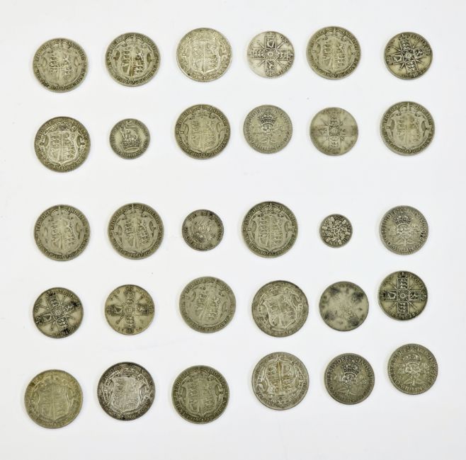 Large quantity of English pre 47 coinage, weight 1.829 kgs
