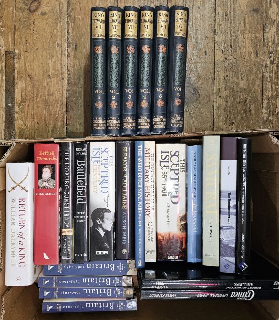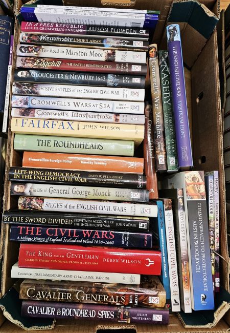 Cromwell and Civil War interest to include:-  Buchan, John "Oliver Cromwell", Hodder & Stoughton 1934, green cloth Belloc, Hilaire "Cromwell", Cassell & Co 1934 Firth, Charles "Oliver Cromwell" Sherwood, Roy "Cromwell, King in all but Name" Kitson, Frank "Old Ironsides", various volumes relating to Cromwell and the Civil War published by Pen & Sword Wilson, Derek "The King and the Gentleman", Charles Stewart & Oliver Cromwell 1599 to 1649 and other volumes to include "This Sceptered Isle, the 20th Century", "A Brief History of Britain" in 4 vols, etc (3 boxes)