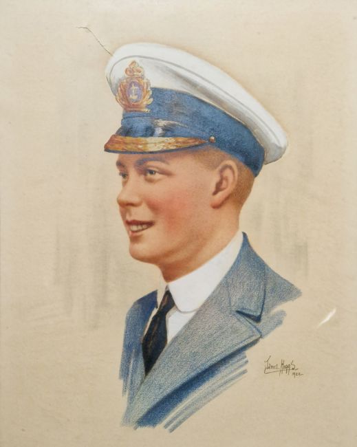 James Higgs (19th/20thcentury) Watercolour/gouache Profile portrait of George V in military dress, signed and dated 1922 lower right, framed and glazed, image size 49.5cm x 39.5cm, together with a profile portrait of a young Edward VIII in naval dress by the same hand, signed and dated 1922 lower right, framed and glazed, image size 49cm x 39cm (2) Condition Report Dimensions including frame - 67.5cm x 57cm