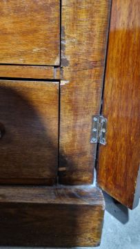 Surface scratches, scuffs and knocks. Areas of loss to veneer, no escutcheon. General wear and tear.
