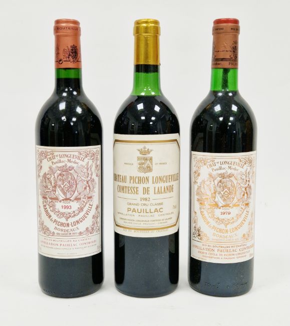 Two bottles of Chateau au Longueville, Baron Pichon Longueville 1979 and 1993 and one Chateau Pichon Longueville Comtesse de Lalande Grand Cru Classe 1982 Pauillac (3)