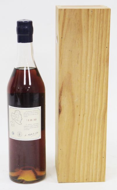 Armagnac Baron de Sigognac 1953 in original wooden box with sliding lid, 40% vol, 70cl