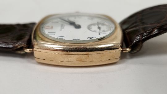 All clocks and watches are sold untested for time keeping accuracies. Upon inspection this watch was not ticking, possibly over wound. Enamel dial cracked in numerous places. Crown adjusts the hands smoothly. The case back with engraved initials, along with the date 23-10-29. Surface marks, scratches and wear visible throughout, commensurate with age and previous use.