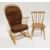 Ercol pale beech and elm comb back double bow 'Chairmakers' windsor rocking chair with original cushions, 106cm high x 64cm wide x 74cm deep and an Ercol pale elm seated stickback dining chair, 80cm high x 39cm wide (2)