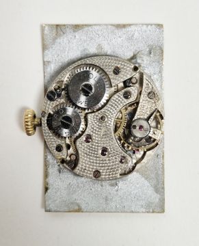 All clocks and watches are sold untested for time keeping accuracies, however upon winding this watch starts ticking. Dial in need of restoration. Minute hand is off but still present, seconds hand missing. Dial cover is heavily scratched and discoloured. Case back closes but is very loose. Marks, scratches and wear visible throughout commensurate with age and previous use.