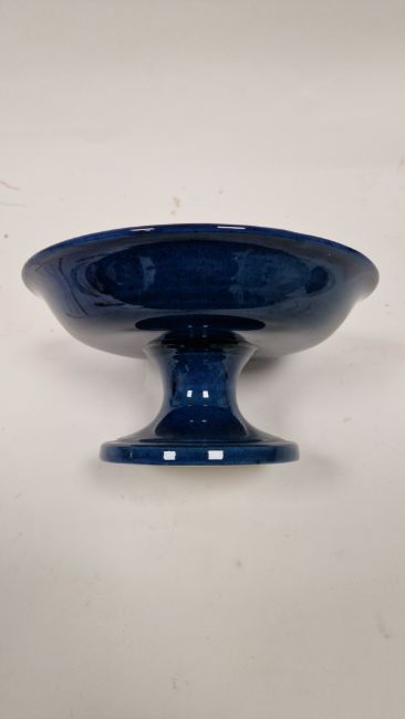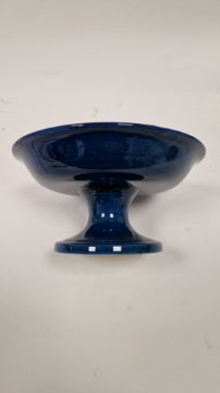 Moorcroft Moonlight blue pattern small footed comport, impressed MOORCROFT/MADE IN ENGLAND/69, signed in green, tube-libned with trees in landscape, on a blue ground, 9.3cm high