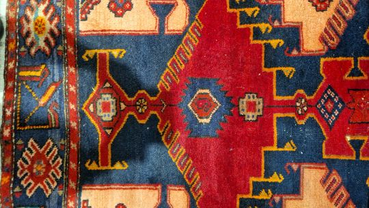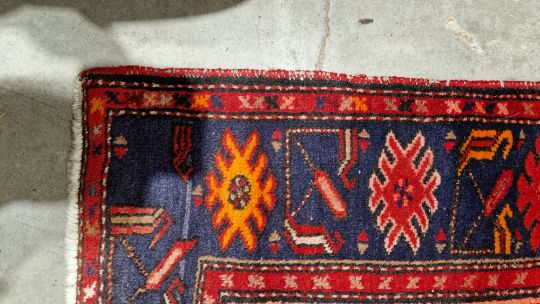Wear/unever wear. No obvious signs of repair. Wear and some broken threads to edges. Some small areas of thinning. General wear and tear.