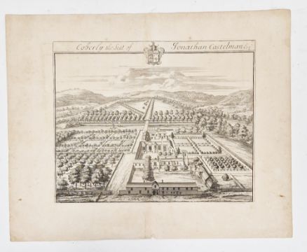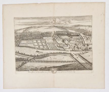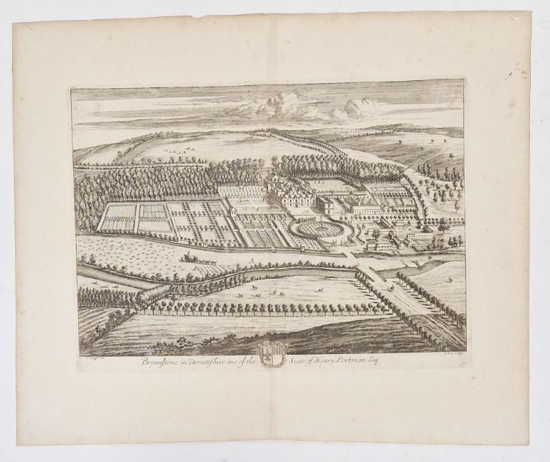 Johannes Kip (1653-1722) four engravings of country houses including Coberly the seat of Jonathan Castleman esq, Alveston the seat of Edward Hill esq, Dumbleton the seat of Sir Richard Cocks Bar and Bryanstone in Dorsetshire one of the seats of Henry Portman esq, each 46cm x 56cm