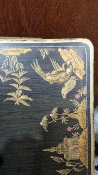 Light surface scratches, scuffs and wear to decoration on both tops. Ring stain to top of one. General wear and tear.