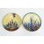 Two Crown Devon Fieldings Art Deco circular dishes, with printed black factory and Mattita marks, the first decorated with a cottage in landscape, the other with flowers, on a yellow ground, each approx. 31 cm diam. (2)
