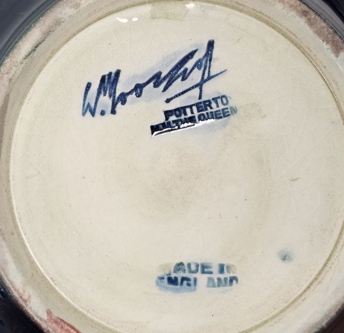 Moorcroft Lily pattern small compressed globular bowl, Impressed W. Moorcroft/Potter to HM. The Queen, Made in England, in blue, tube-lined with a red-orange lily on a flambe ground, 11.5cm diam.