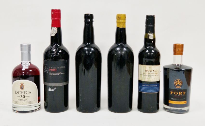 Six bottles of various port including Pacheca 30 years tawny, Dows 2004 Master Blend (50cl), two without labels, etc (6)
