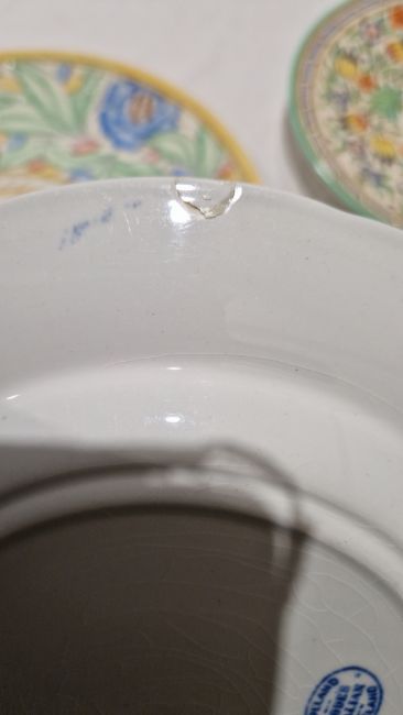 Composite collection of Spode Italian pattern blue and white transfer printed various wares, circa 1900 and later, printed blue and black marks, various impressed marks, including a part tea service, dinner plates, side plates, bowls, a sauce boat, a baluster vase and cover and other items Condition Report Surface cratches and signs of use on all. Crazing to most items. Dinner plate with repaired chip to edge, hairline to another. Hairline to one side plate. Two cups with repairs to the handles. Egg cup chipped and another with crack. Teapot with damage and repair to lid, large crack to base and staining. Some pieces discoloured. No chips, cracks or damage to lidded vase, black Spode stamp to base, height 33cm. General wear and tear.