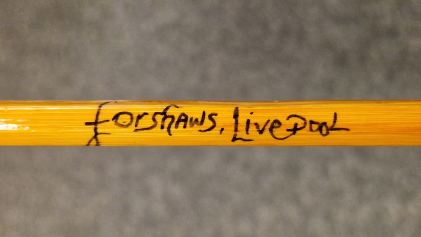 Four fishing rods in cloth rod bags including Foreshaws of Liverpool Palace Deluxe 2 piece rod, Milbro light 3 piece salmon fly rod, Alex Martin ' The Caledonia ' 3lb rod and Notley 3 piece rod together with four loose split cane rods (8)