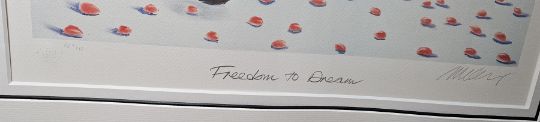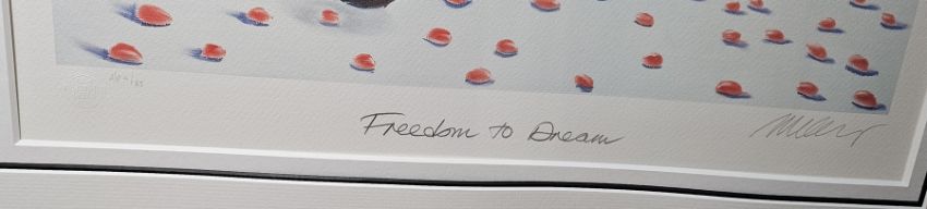 After Mackenzie Thorpe (b.1956) Colour print "Freedom to Dream", artist's proof, signed, titled and numbered 4/85 within margin, Washington Green blindstamp, framed and glazed, mount aperture 47cm x 49.5cm