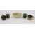 Robert Goldsmith for Selborne Pottery, a small salt pot with gilt decoration on green and red ground, impressed mark to base, 10cm high, a small coffee cup with tenmoku glaze rim by John Leach for Muchelney Pottery, a studio pottery coffee cup, incised initials JG to base, possibly Judy Glanville, a studio pottery cup marked AA to base and a studio pottery bowl with khaki colour glaze marked AJPA to base (5)