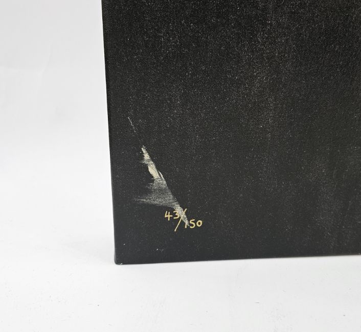 After Peter Smith (British, b.1967) Giclee print on canvas Cartoon face crying, limited edition, signed and numbered 43/150, 61cm x 121.5cm