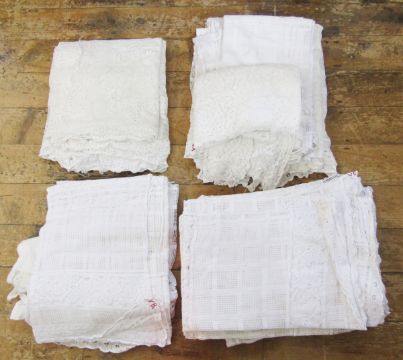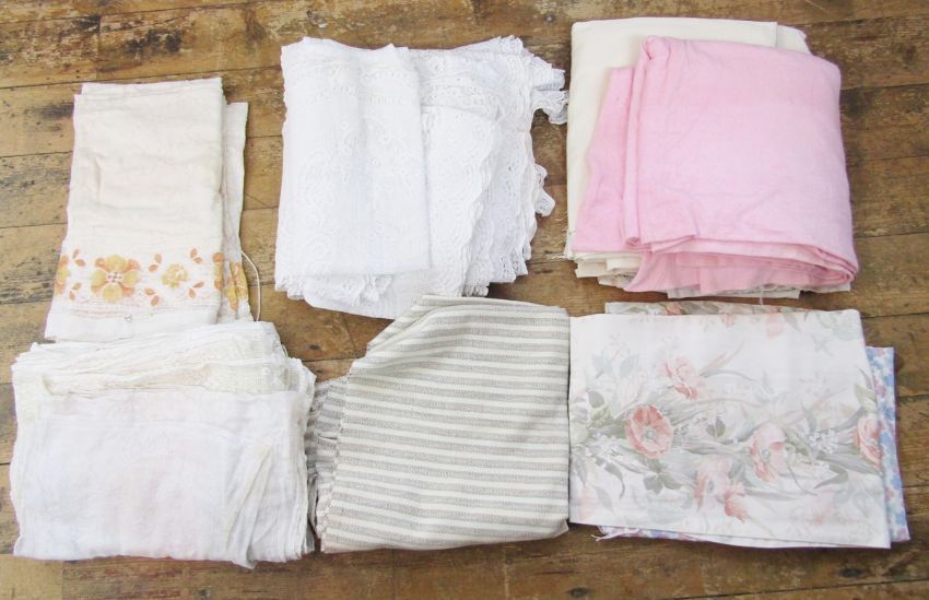 A large quantity of machine net curtains in various patterns, sundry curtains and fabric lengths