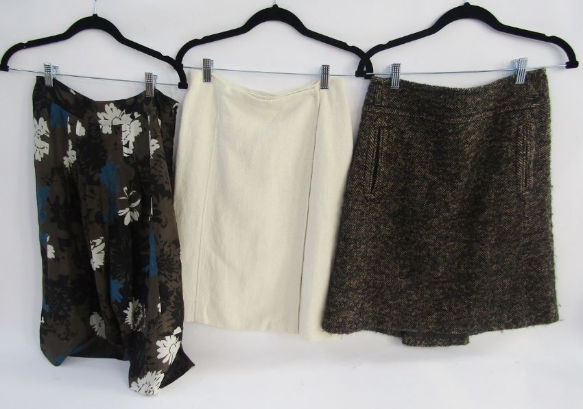 Tweed skirt labelled Mulberry, cream wool skirt labelled Prada and a silk floral patterned bell skirt labelled Jigsaw - all size 8 ( 3)
