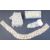 Two lengths of needlepoint lace, possibly Venetian, stylised floral design made into curved collar on chiffon ground, quantity lengths of lace, possibly bobbin, one collar shaped, length of net lace with pearl adornment, and other pieces