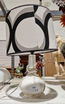 Casa Pupo white glazed bottle-shaped table lamp, printed marks with a 1960's style drum shade, 53cm high max including shade