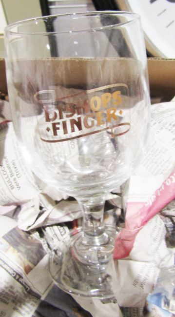 Extensive collection of branded glasses and other drinking related items to include Bishops Finger glass, set of six J Martell Maison de Cognac highball glasses, Glenfiddich small glass jug, boxed, 'The Glencairn Glass' boxed and other items