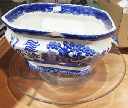 Royal Worcester gold lustre part tea service to include teacups, espresso cups, saucers, ramekins, etc, a blue and white Old Willow style tureen, large white ceramic neo-classical lamp and other items (2 boxes plus)