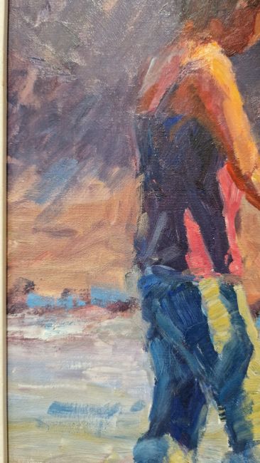 Russell Pond (b.1966) Oil on board Beach scene, signed lower right, 39cm x 29cm  Condition Report Good condition. Very light scratch towards top of painting. We do not offer in-house shipping. Please try Mailboxes.com, bidandbox.com or mjmpost458@gmail.com