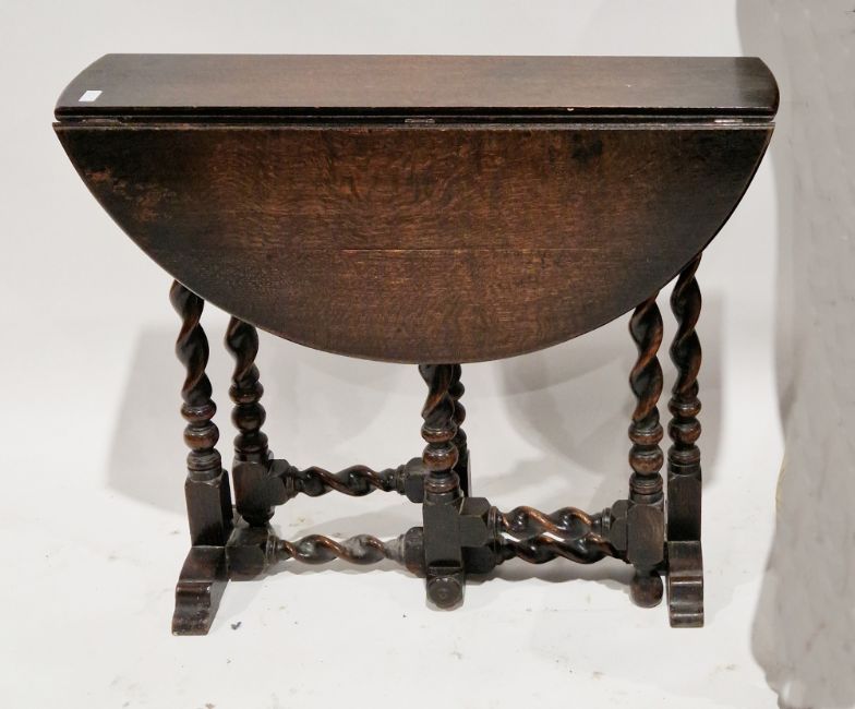 Early 20th century oak oval gateleg table on barleytwist and block supports, 70cm high x 80cm long x 83cm wide