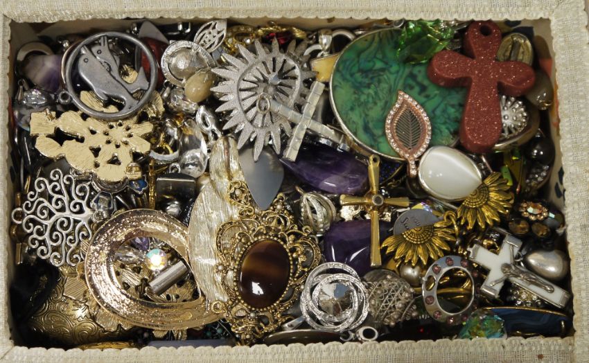Two wicker sewing baskets containing a large quantity of costume jewellery mainly earrings, pendants and lockets including some agate examples