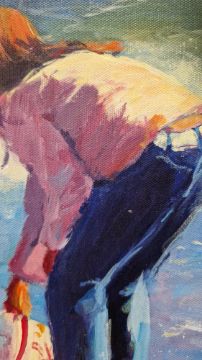 Russell Pond (b.1966) Oil on canvas Beach scene, signed lower right, 34.6cm x 34.6cm Condition Report Good condition. No signs of damage or restoration.We do not offer in-house shipping. Please try Mailboxes.com, bidandbox.com or mjmpost458@gmail.com