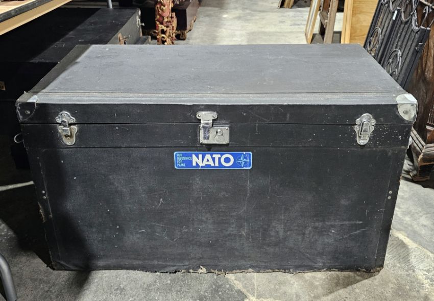 Large vintage Brooks Industria black travel case with NATO sticker to front