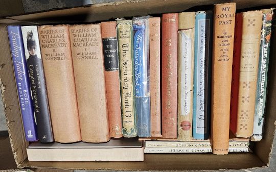 Rowling, J K "Harry Potter and the Goblet of Fire", Bloomsbury 2000, d-w, "Harry Potter and the Philosphers Stone", Bloomsbury 1998, limp cover, "Harry Potter and the Prisoner of Askaban", Bloomsbury 1999, d-w and other assorted volumes to include Knox, Cleone "The Dairy of a Young Lady of Fashion in the Year 1764-1765", Sprigge, Elizabeth "Sybil Thorndyke Casson", Gollancz, Barkworth, Peter "For All Occasions", Great Events of the Year 1953, Great Events of the Royal Year 1953, Hadfield, John (ed) "The Book of Beauty", various Saturday books, "My Royal Past by Baroness Von Bulop as Told to Cecil Beaton", Dimbleby, Jonathan "Richard Dimbleby", Cohu, Will "Out of the Woods the Armchair Guide to Trees", Hastings, Mcdonald "Diane" and various other volumes (6 boxes)
