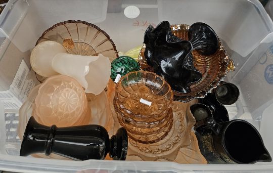 Quantity of carnival glass and other coloured glassware including plates, vases, dishes, etc (2 boxes)