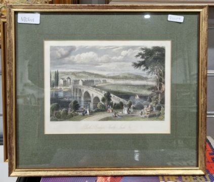 Handcoloured engraving of St Johns Church, Cirencester, engraved by W Angus from a drawing by W Barley for the Beauties of England and Wales, engraving Heidelberg Von Re Sensteiner Weg Aus Gesehen and two further engravings (4)