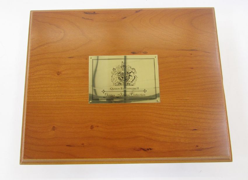 Royal Mint silver proof golden jubilee collection, comprising of 24 coins, collection number 2646, contained in wooden collector's box (small dent to inside lid), in excess of 670gms of sterling silver in purple cloth bag