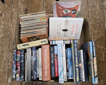 Assorted volumes to include Heinlein, Robert A "The Menace from the Earth" 1966, d-w, Harrison, Harry "War with the Robots", the Science Fiction Book Club 1968, Aliens Omnibus, the Boy's Friend magazine, assorted, "The Ninth Sextant Blake Omnibus" and assorted early 20th century volumes to include Fairless, Michael "The Road Mender", 2 vols, Laycock, Samuel "Warblins Fro' an Owd Songster", Galsworthy, John "Awakening", illustrated by R Sauter, Fairless, Michael "The Gathering of Brother Hilarious", Duckworth & Co, illustrations, Lang, John "Outposts of Empire" and "The Land of the Golden Trade", "Tales from Hoffman", Friedlander, V H "Mirrors and Angles", illustrated by Margaret Dobson, Country Life, Coote, Colin R "In and About Rome", Methuen, d-w, the Country Diary of an Edwardian Lady, Hanham, Alberta "Spin a Silver Dollar", illustrated by Beatien Yazz, d-w, MacKenzie, D A "Indian Myth and Legend", Gresham and many other assorted volumes (3 boxes)