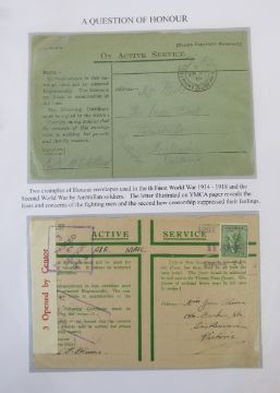 World stamps: Neat YMCA Exhibition collection with 30+ covers from the Great War, WWII to QEII in well written-up ring-binder album with various postmarks, cachets, air, censor, field post registered, HM ships, first day covers and ‘Active Service’ including Japan and Korea.