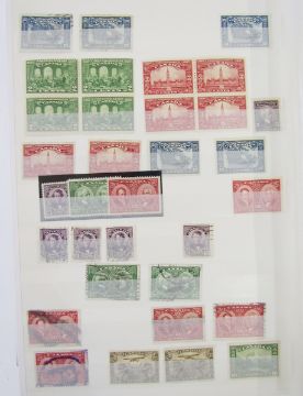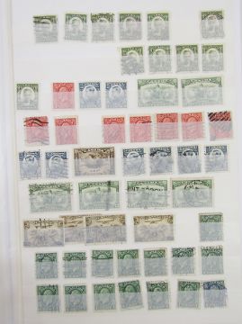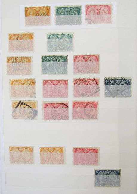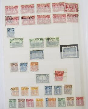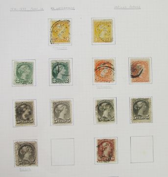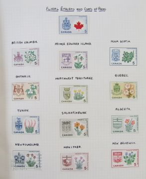 Stamps of Canada: Two albums and stock book of mint and used, QV-QEII, mostly definitives and commemoratives with some air, fiscals, Colony of Canada, many Queens heads, sets and higher values to $1. 100s.