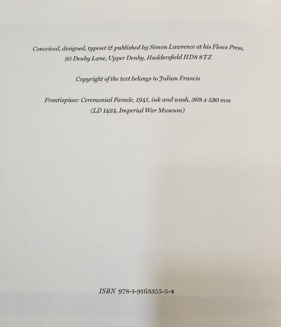 The Fleece Press - Francis Julian "My Brushes My Sword, Anthony Gross, War Artist", The Fleece Press 2022, limited to 330 copies, quarter bound in cloth and Louise Brockman marbled paper, numerous illustrations throughout and folding plates tipped in, pictorial cartographic ep, 2 copies of this book, York, Malcolm (ed) "To War with Paper and Brush", Captain Edward Ardizzone Official War Artist, The Fleece Press 2007, 700 copies printed, cloth binding with pastedown title, York, Malcolm (ed) "The Artistry of Leslie Cole - Today I Worked Well - The Picture Fell Off the Brush", 2010, 500 copies,  quarter cloth, marbled paper by Louise Brockman, numerous colour illustrations (4)  From the Library of James Fleming - The Book Collector - and member of the Fleming dynasty