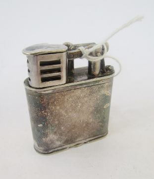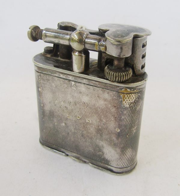 Early 20th century Dunhill Lift Arm lighter in a white metal case, patent no.143752, made in England, 5cm high