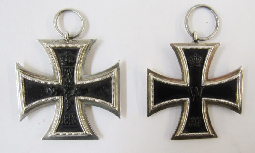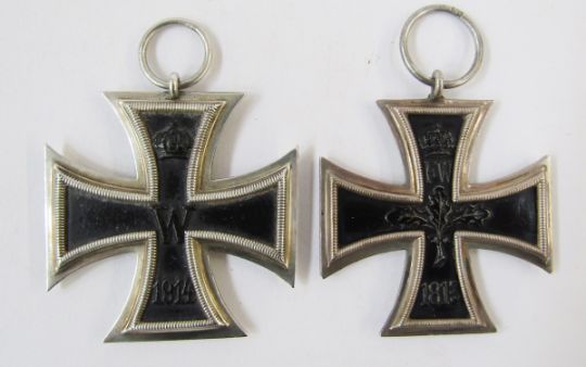 Two WWI Iron Cross and 2nd class medals, one has ring-stamped 'K.O.'.