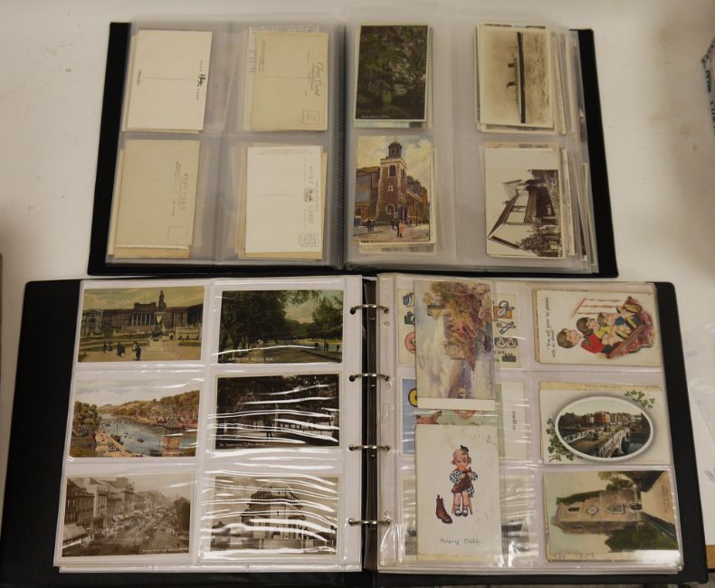 Two albums of postcards, early 20th century and later, with examples of topographical, humorous and many more (2)