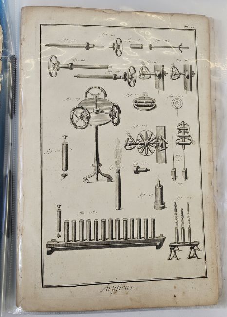 "Recueil de Planches, sur Le Sciences , Les Arts Liberaux et Les Arts Mecaniques avec Leur Explication" Paris - Briasson, David,.... 1762 numerous engraved plates disbound in a blue folder, some of the engravings are mounted (2 blue folders)