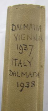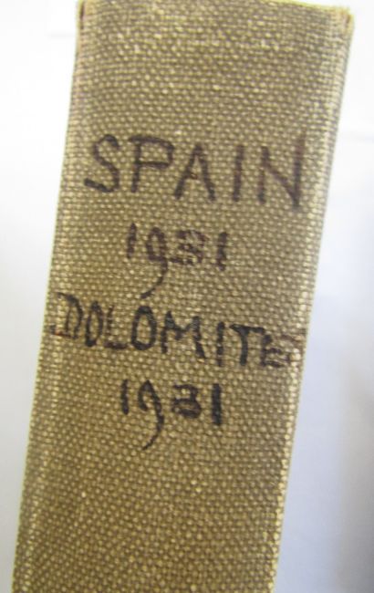 Three mid-century photograph albums c. 1930's topographical, to include Austria, Spain, Italy, including landscapes, historic castles, houses, postcards, one page is dated Italy 1938, all three uniformly bound, cloth with small pictorial detail (3)