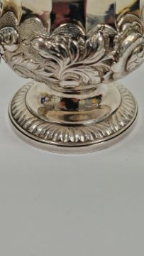 George III silver christening cup, London 1824, William Fountain, of baluster form with lobed twisted and floral embossed decoration, the handle cast in the form of a snake, on a gadrooned circular spreading foot, 10cm high, 4.02ozt approx.