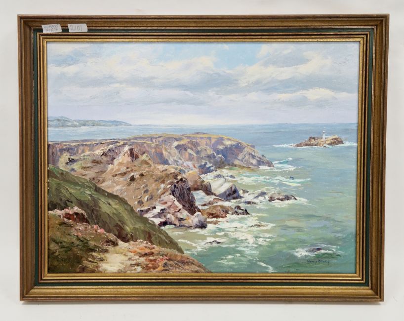 Nancy Bailey (1913-2012) Oil on canvas "North Cliffs to Godrevy", coastal landscape, signed lower right, signed and titled verso, 46cm x 61cm
